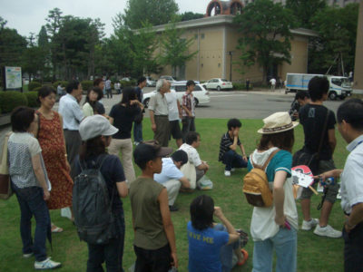 会場(教育地域科学部1号館前)付近に着いたのは10時50分ごろ。
